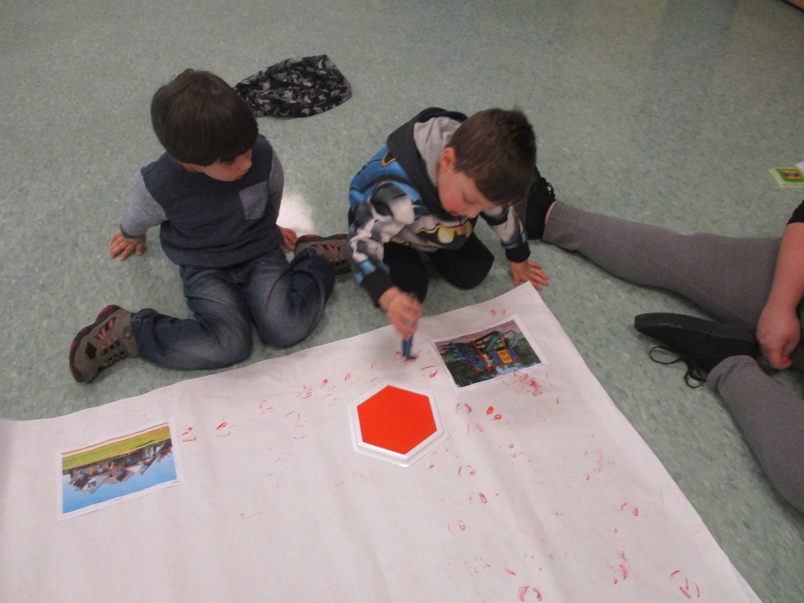 This week, we focused looking at ourselves. We guided the children's thinking with a mirror, white paper, a paintbrush and a palette with a variety of different skin tones. The children discussed what they saw in the mirror, the paint color that would best represent their skin tone and how they were going to guide their paintbrush. The children enjoyed mixing the various colors together to achieve their skin tone. Also, they thought about where they needed to place the paint circle on their paper.
